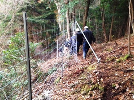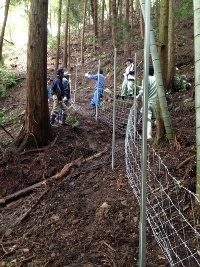 『里山整備』の一環として前回に続いて、『害獣対策』の柵作りを行ないました。ブログ「山行き2」もご覧になってくださいね♪